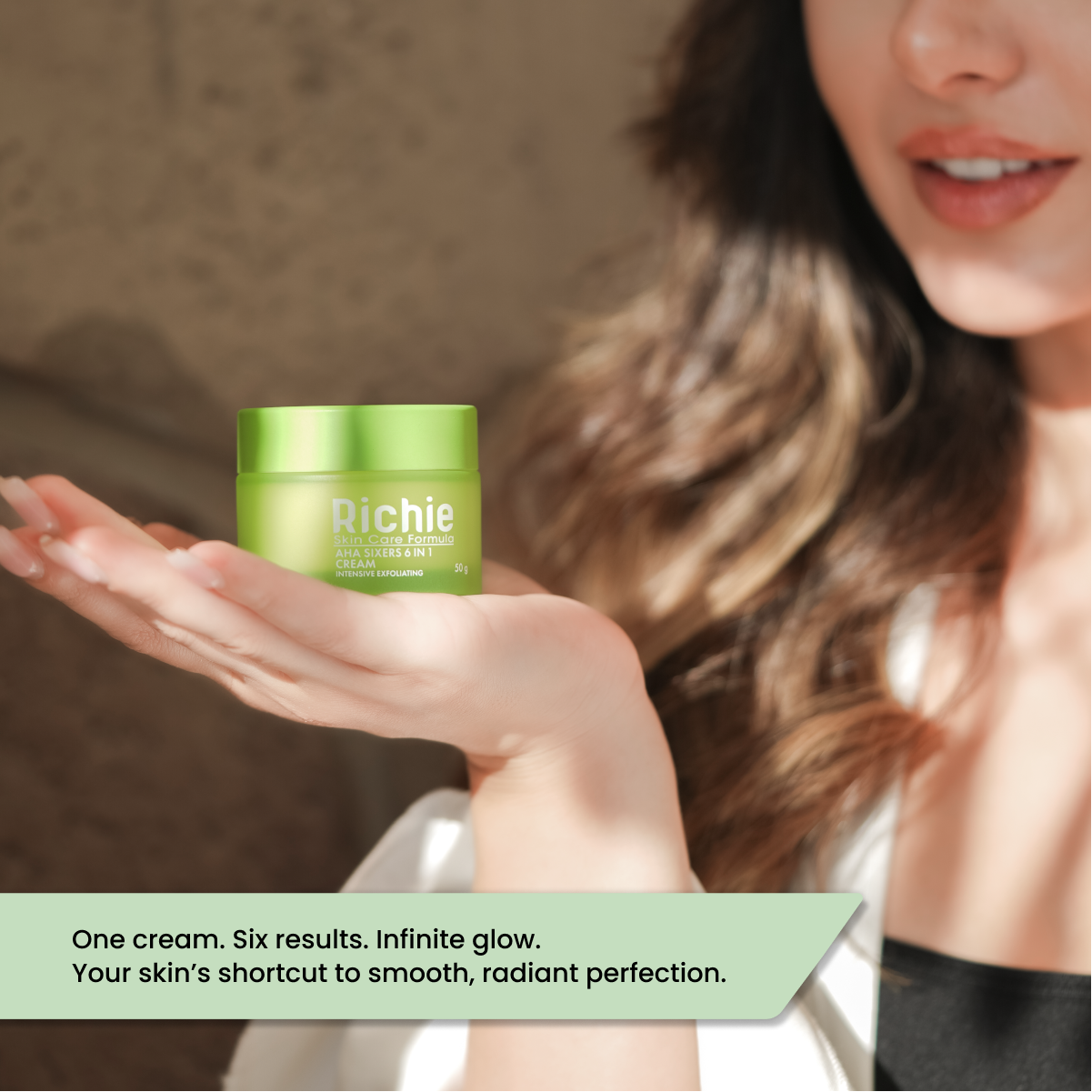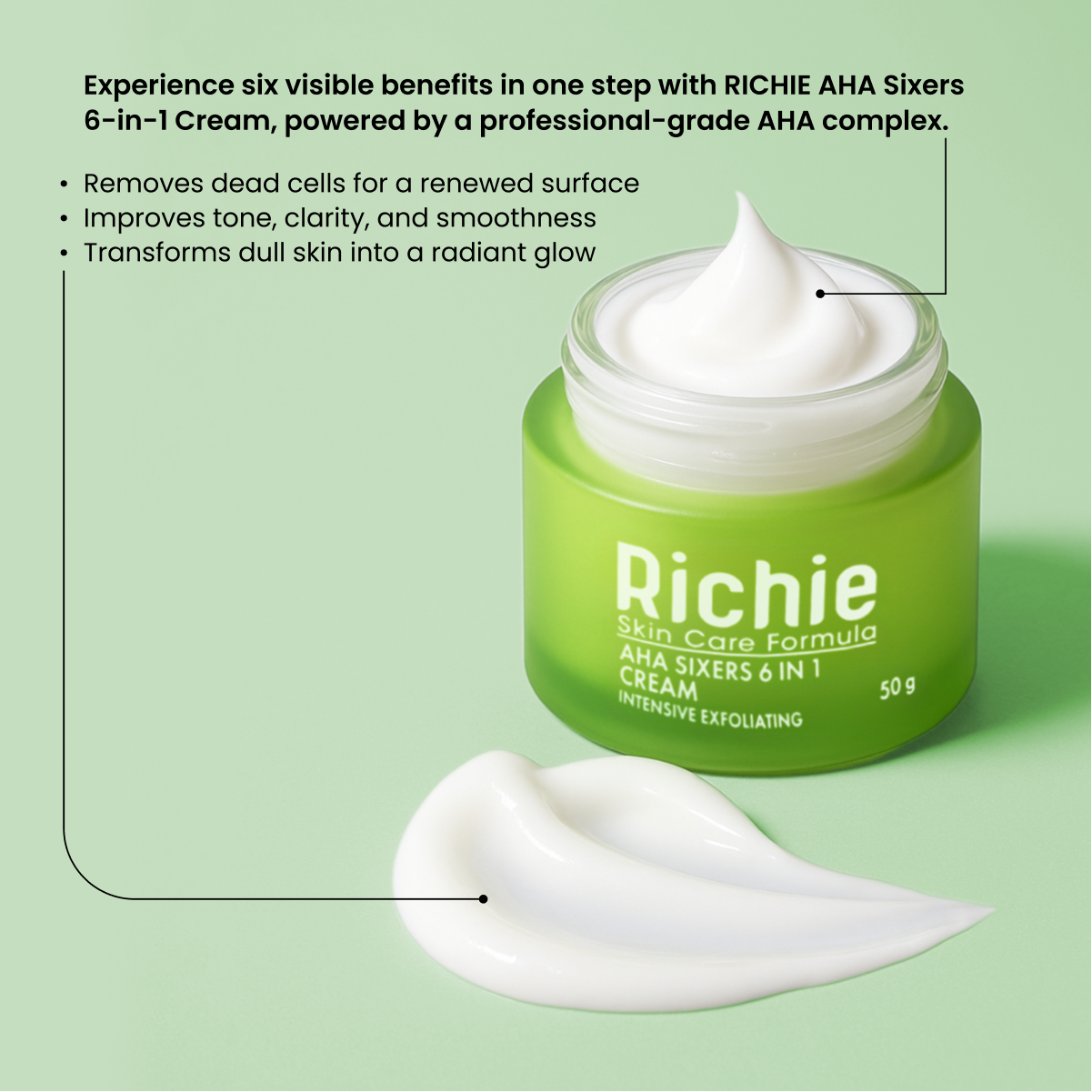 RICHIE AHA Sixers 6-in-1 Intensive Exfoliating Cream, your fast-track to smoother, clearer, more radiant skin.
