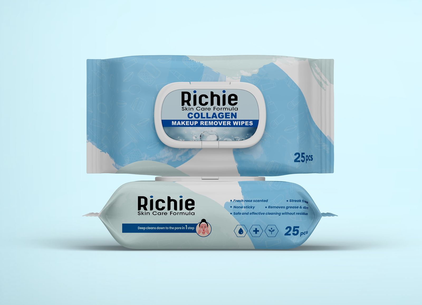 Experience gentle yet effective makeup removal with Richie Collagen Makeup Remover Wipes. Infused with nourishing collagen, these soft, non-sticky wipes deep clean down to the pores in just one step, removing grease, dirt, and makeup without leaving any residue. The fresh rose scent provides a refreshing cleansing experience, while the streak-free formula ensures your skin feels clean and smooth. Perfect for daily use or travel, each pack contains 25 wipes for safe and effective skincare.