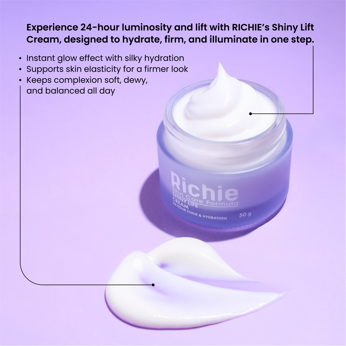 RICHIE Shiny Lift Cream delivers 24 hours of luminous hydration and visible lift in one silky-smooth formula.